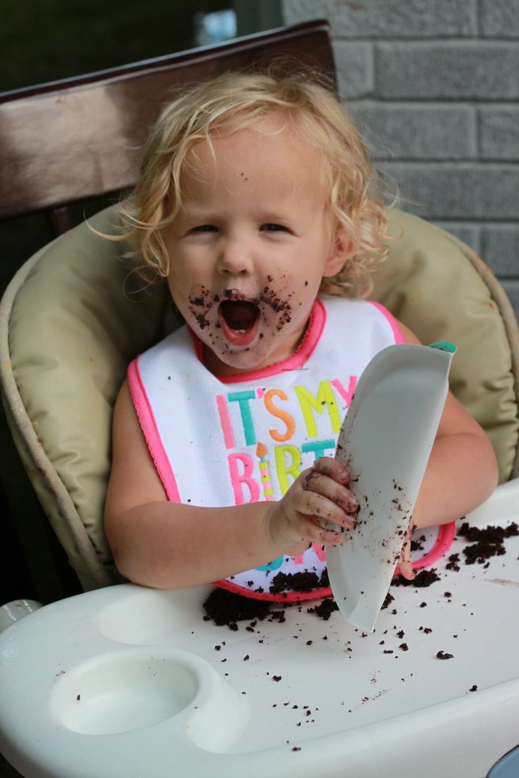 We had a little party at her daycare. The daycare always gives tiaras for the birthday girls to wear. When we walked in Kate had her sunglasses and tiara on. Since we had just gotten back from Florida she was obsessed with wearing sunglasses all of the time.